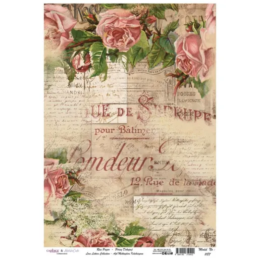 Lehký, jemný, ale zároveň pevný papír ideální na decoupage. Rýžový papír  je mírně průhledný a zblízka jsou v něm viditelná rýžová vlákna. Papír tak získává na omak jemnou strukturu.