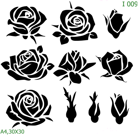 Plastová šablona pro malování – Rostliny a květiny – Sada drobných růžiček (I009)