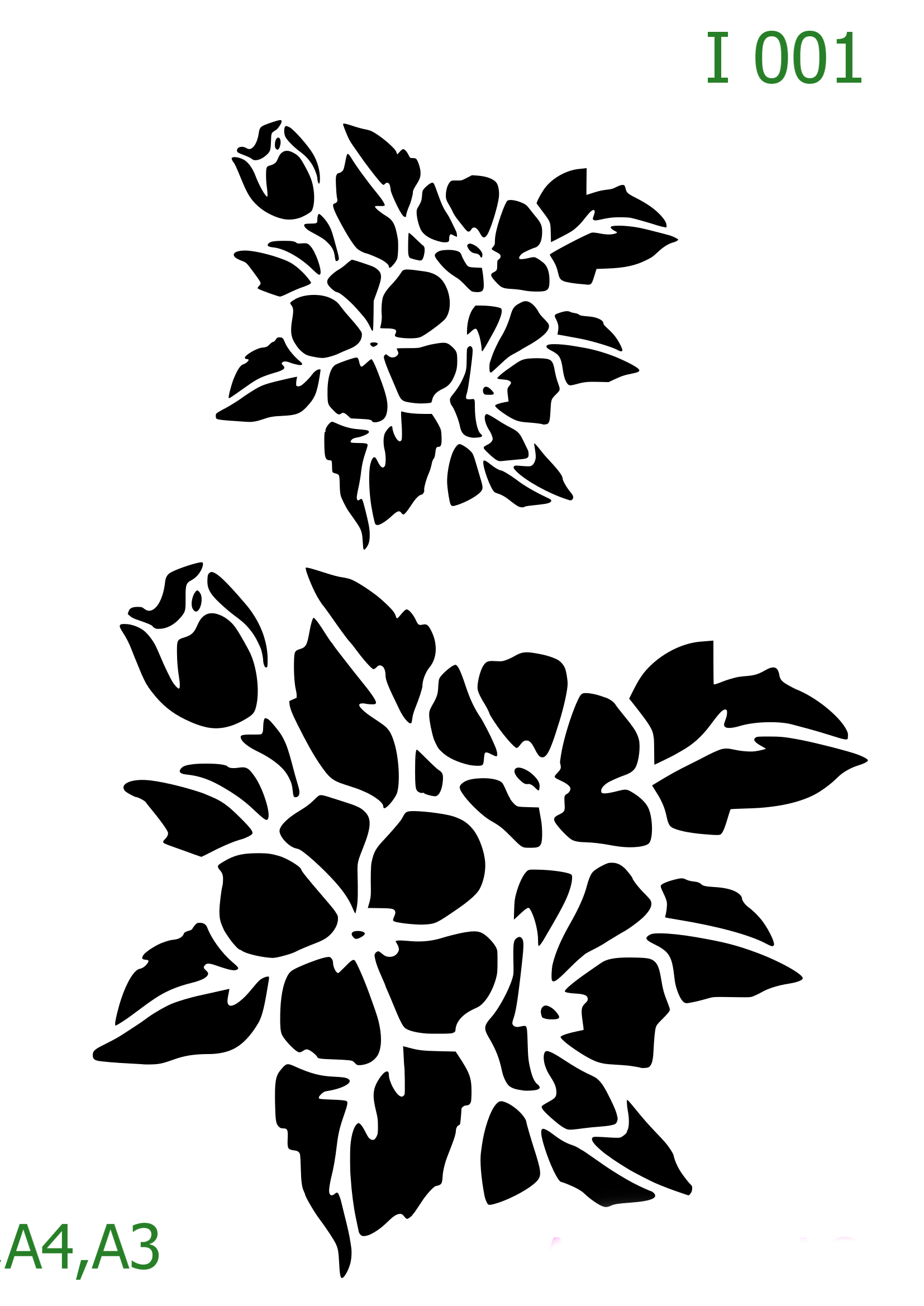 Plastová šablona pro malování – Rostliny a květiny – Dvojice květů s listy (I001)