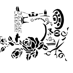Plastová šablona pro malování – Ostatní – Šicí stroj a růže (R065)