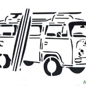 Plastová šablona pro malování – Auta, lodě, letadla, vlaky – Auto a nápis (G004)